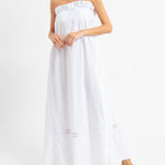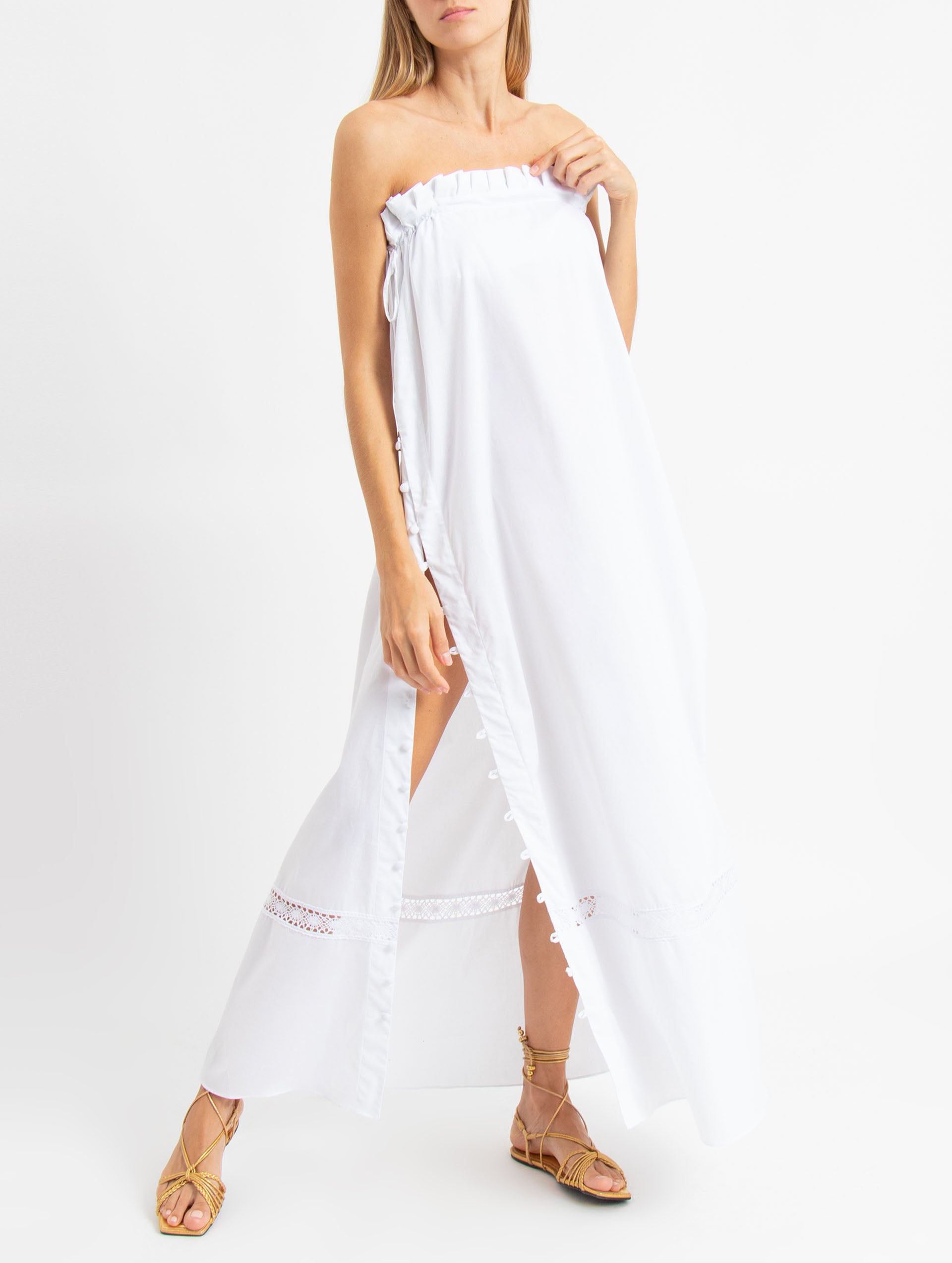 The Lina White dress from Sinesia Karol features a cut-out halterneck bodice.