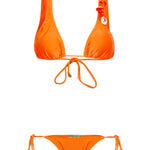 Angelina Satsuma bikini bottom has side string ties for a precise minimal fit with luxury gold SK logo hardware. Angelia is made of sumptuous silky stretch swimwear fabric in Satsuma ornage. Pair with Angelina Laranja Bikini Top.