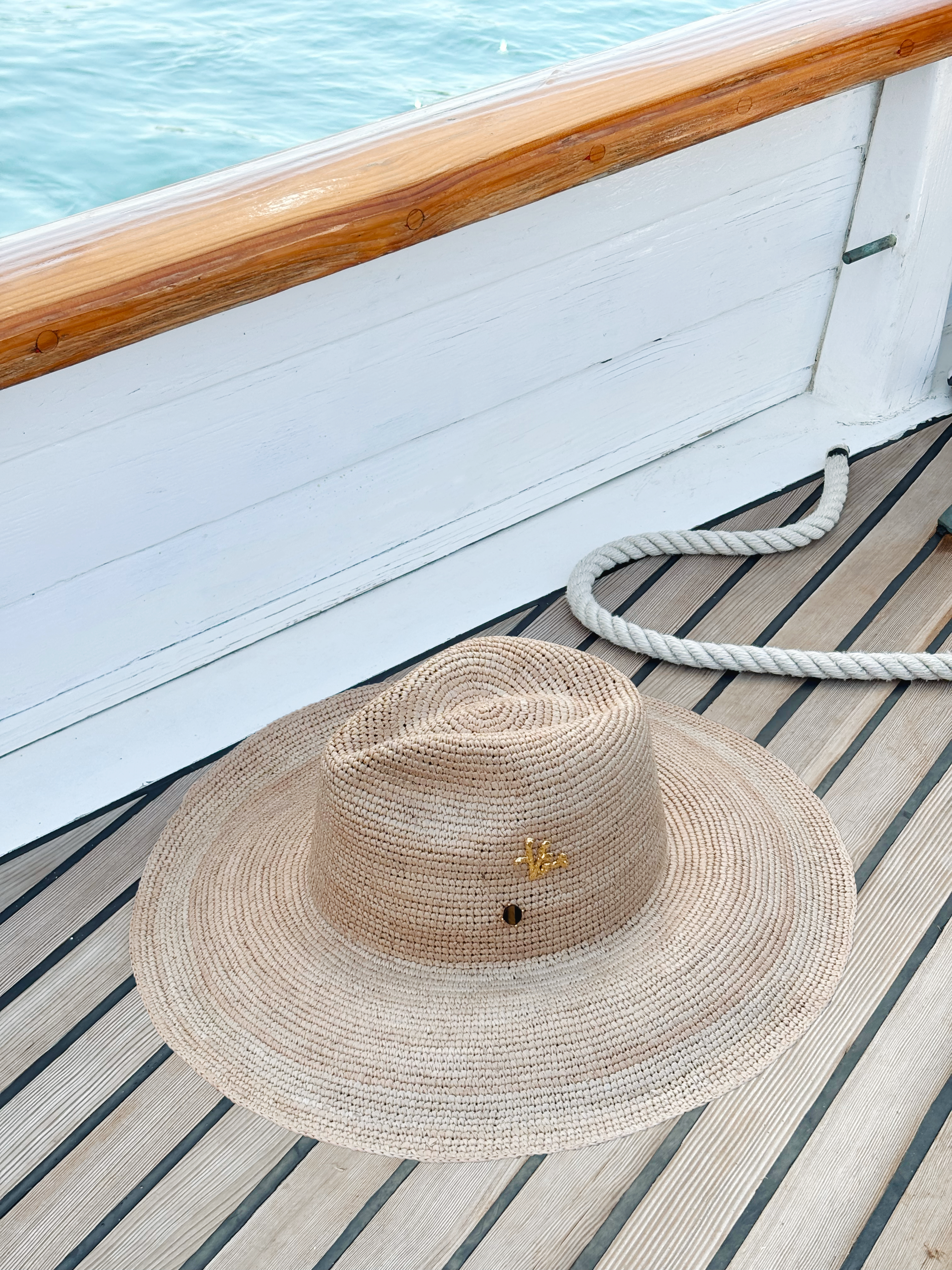 EVA - FOLDABLE HAT - SEMI-PRECIOUS STONE & CORAL BROOCH