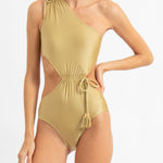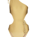 Sinesia Karol's Jade swimsuit Duna is designed in an asymmetric silhouette with tie-details and a cut-out waist.