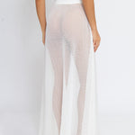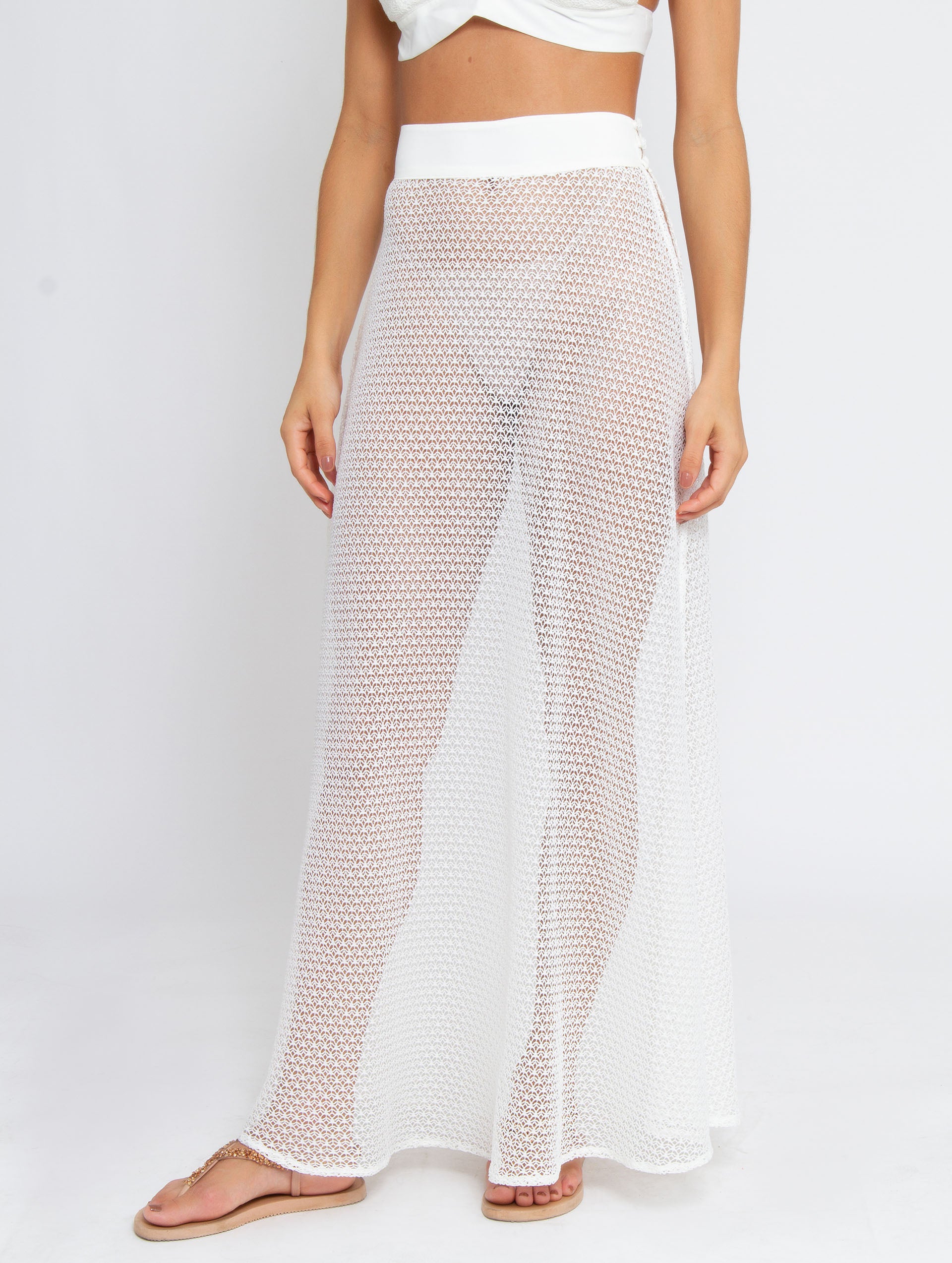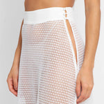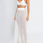 The Naomi skirt is carefully constructed of an airy white cotton-blend pointelle knit to provide just enough coverage while keeping you cool. Floor legnth and deceptively si,ple, Naomi features a cheeky side button closure and high waist. Wear with the Amanda Cardigan and the Alice Pointelle Pant for a column monochrome statement.