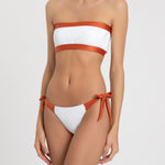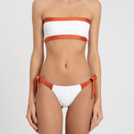 The Raika bikini top is a fun color-blocked bandeau in our Off-white/Páprica combination. Pair it with The Raika bikini bottom to complete the look.