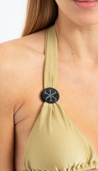 Sinesia Karol's Sania bikini bottom duna adorned with engraved flat round beads.