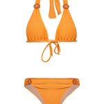 Sania bikini bottom in a textured dobby luxury fabric of citrusy Satsuma orange. The Sania bottom features SK logo details and a sweet low rise. Pair with Sania Top.