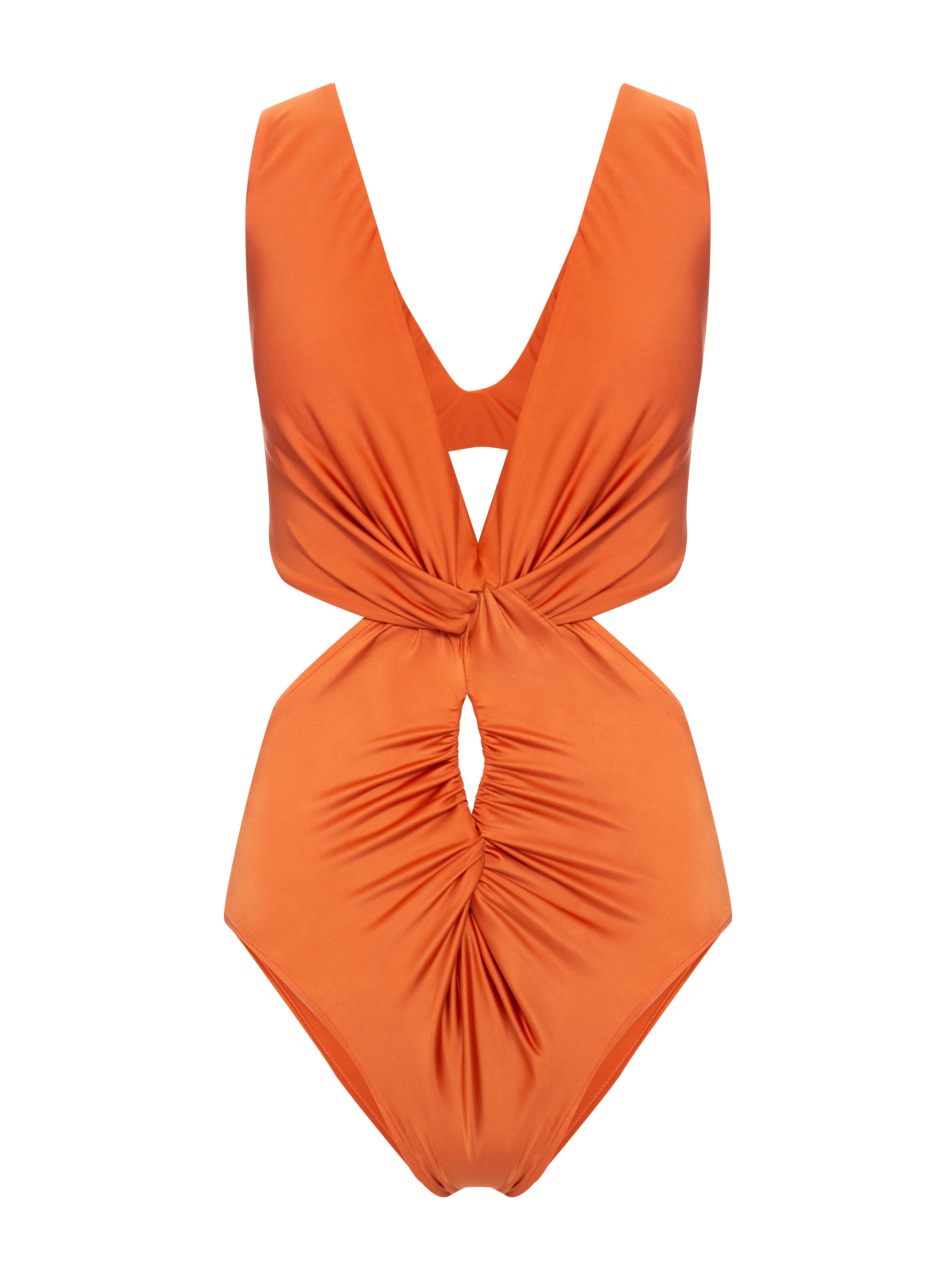With cutouts in just the right spots, The Luma one piece in Páprica is the perfect combination of sexy and elegant. This one piece features side cut out and exposed back. Flattering on many body types, this one piece features moderate coverage.