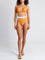Alani bikini top in a textured dobby luxury fabric of citrusy Satsuma orange with adjustable straps and tie-back. Make a sunny splash with Alani beach, cruise, or poolside. Pair with Alani Bottom.